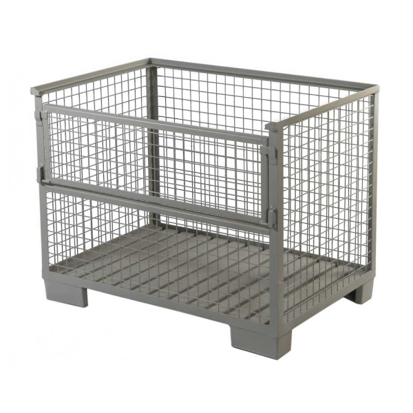 The mesh infill sides allow for easy product identification, and half gates allow for easy access to contents when the pallets are stacked.