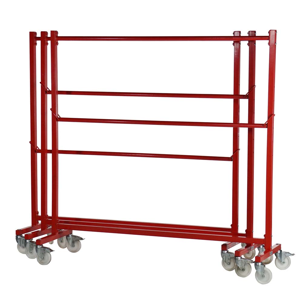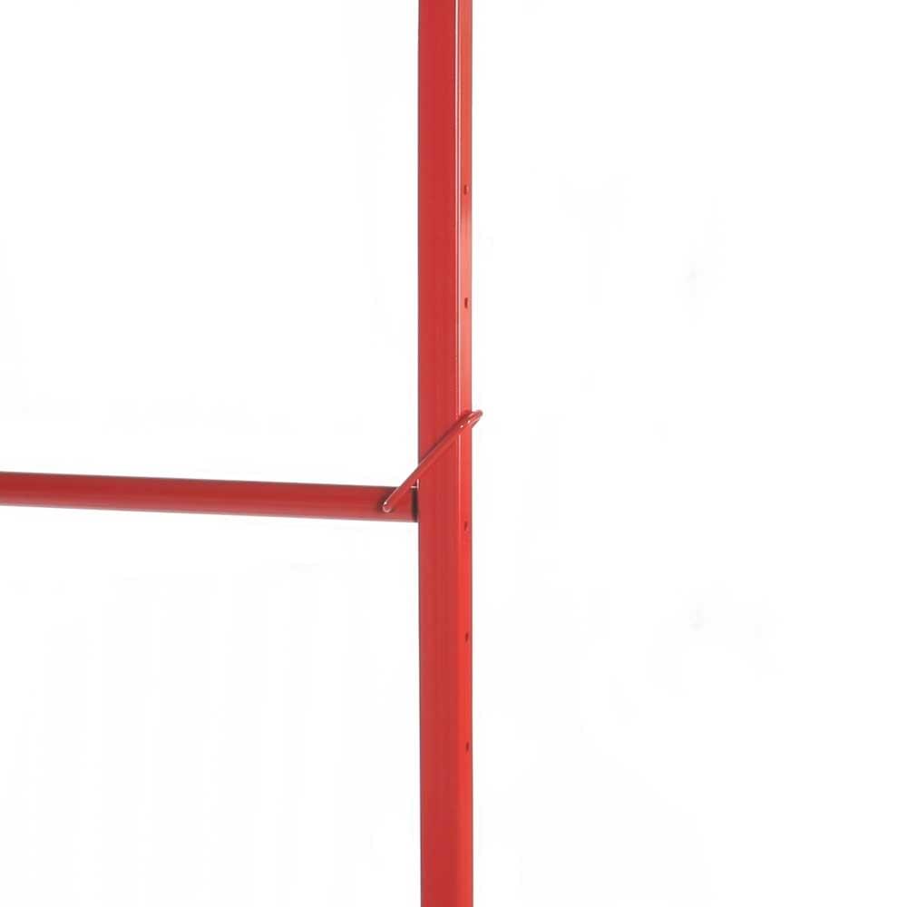 Heavy duty nestable garment rail with adjustable mid height rail.