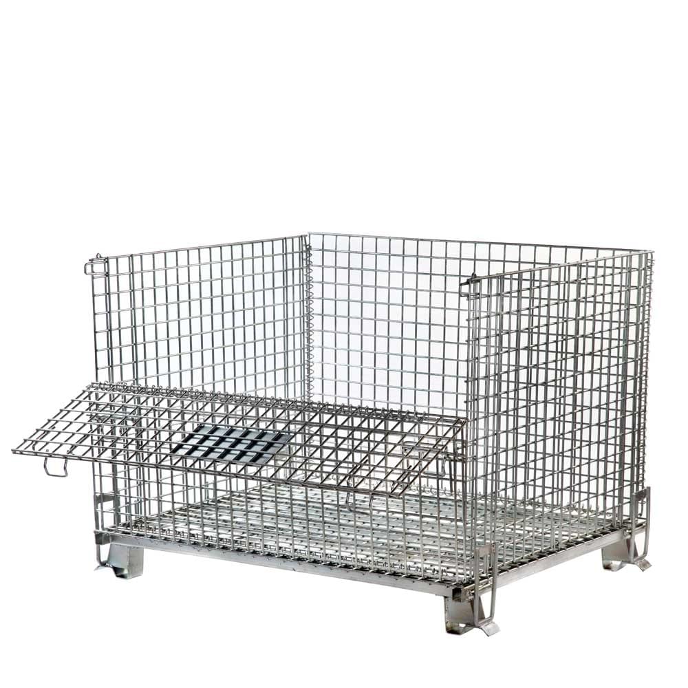 Heavy Duty Collapsible Cage Pallets with half gate on one side.